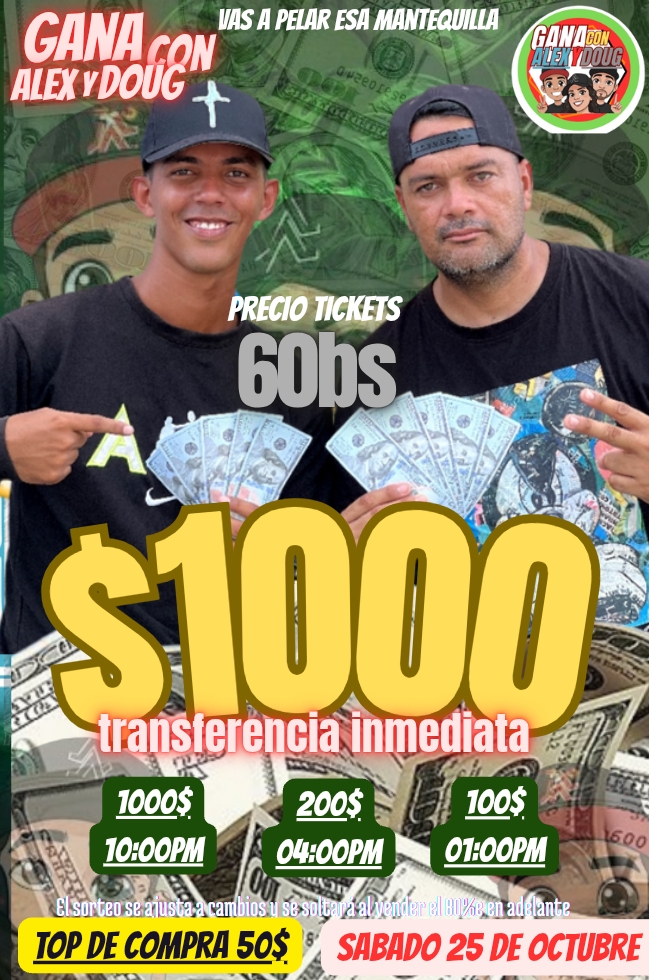 Este 25 de Octubre , tienes la oportunidad de llevarte 1.000 $ Transferencia Inmediata con tan solo 60Bs.